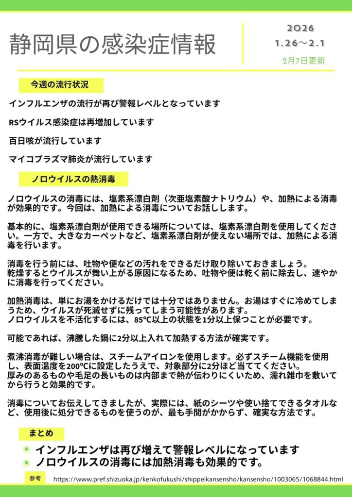 静岡県の感染症情報(1/31)・ノロウイルスの消毒